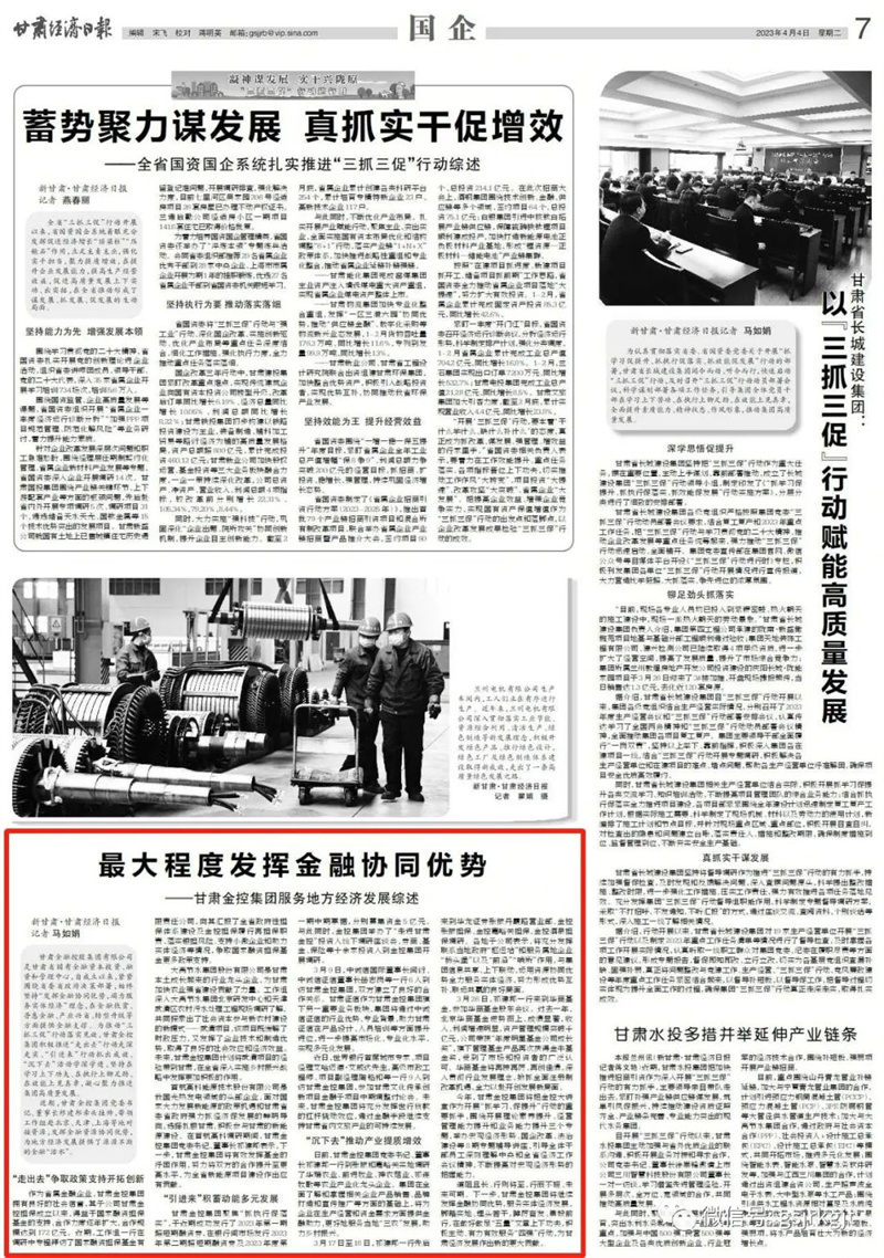 【媒體關(guān)注】最大程度發(fā)揮金融協(xié)同優(yōu)勢——甘肅金控集團服務(wù)地方經(jīng)濟發(fā)展綜述
