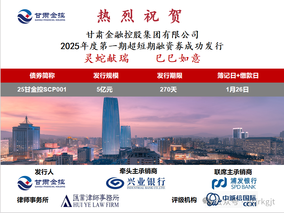 甘肅金控集團成功發行2025年第一期超短期融資券!