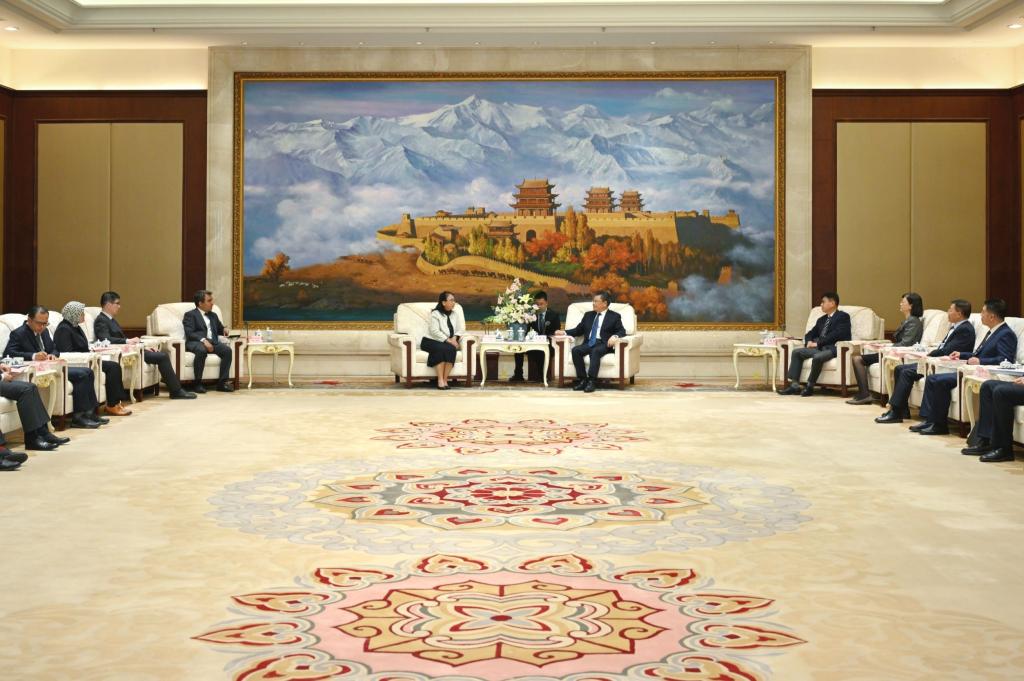 省委副書記、省長任振鶴4月25日在蘭州會見了亞洲國家使節和高級別外交官代表團一行。