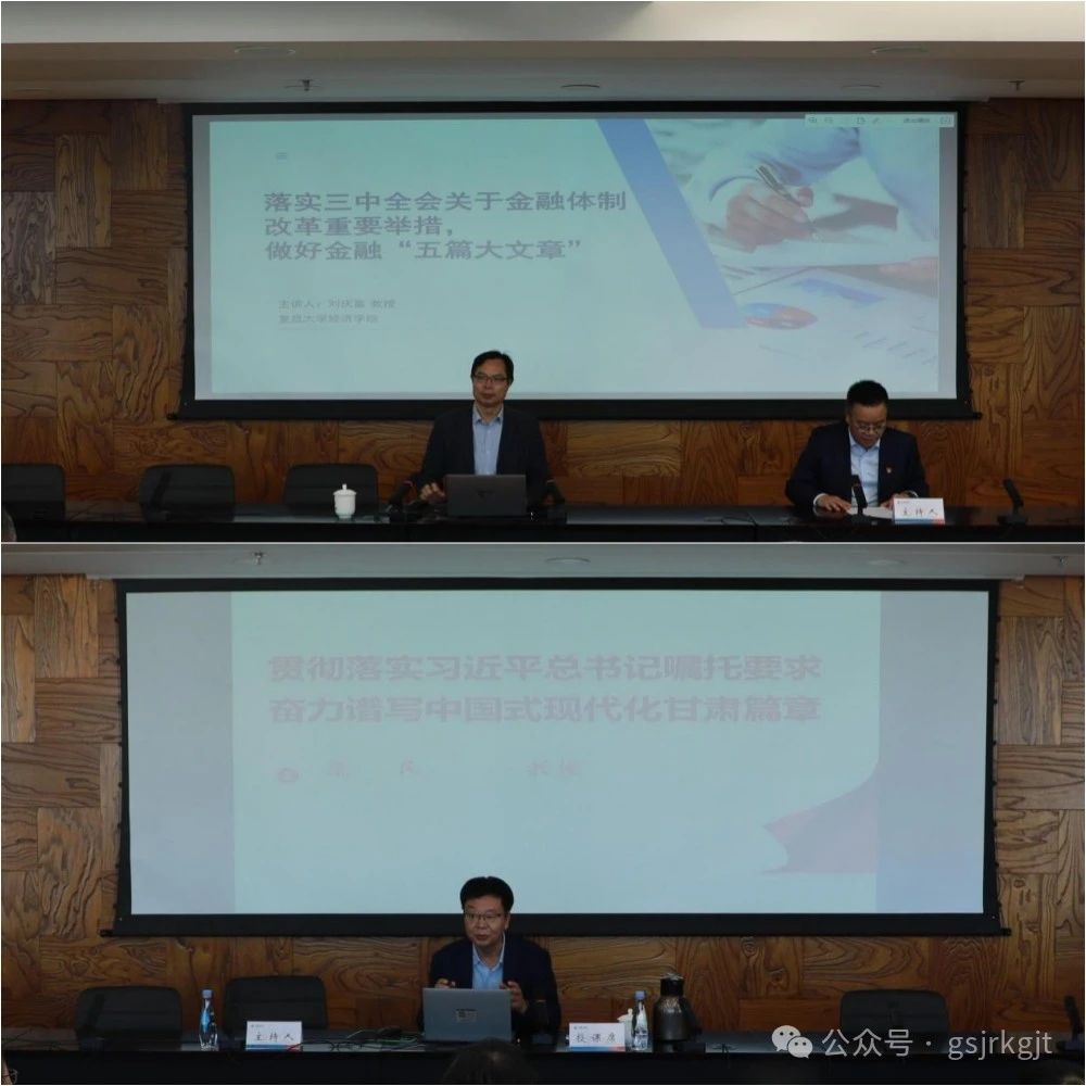此次培訓(xùn)通過線上線下相結(jié)合的方式進(jìn)行。培訓(xùn)期間,全體學(xué)員在線學(xué)習(xí)了黨的二十屆三中全會(huì)精神解讀、構(gòu)建高水平社會(huì)主義市場經(jīng)濟(jì)體制、健全推動(dòng)經(jīng)濟(jì)高質(zhì)量發(fā)展體制機(jī)制、提高黨對(duì)進(jìn)一步全面深化改革、推進(jìn)中國式現(xiàn)代化的領(lǐng)導(dǎo)水平等內(nèi)容,邀請(qǐng)復(fù)旦大學(xué)經(jīng)濟(jì)學(xué)院劉慶富教授從“黨的二十屆三中全會(huì)關(guān)于金融體制改革的重要舉措解讀、做好金融五篇大文章、異常交易的監(jiān)管”三個(gè)大方面,對(duì)中國金融體制改革的歷程、成效與經(jīng)驗(yàn),進(jìn)一步深化金融體制改革的方向與重點(diǎn),“金融五篇大文章”的背景、內(nèi)涵與產(chǎn)業(yè)與落地,金融大數(shù)據(jù)風(fēng)險(xiǎn)管理等內(nèi)容作了全面深入的輔導(dǎo)。邀請(qǐng)甘肅省委黨校康民教授通過“講好黃河‘故事’做足黃河文章,構(gòu)建現(xiàn)代產(chǎn)業(yè)體系、發(fā)展新質(zhì)生產(chǎn)力,貫徹三中全會(huì)精神、進(jìn)一步全面深化改革,加強(qiáng)文化遺產(chǎn)保護(hù)傳承、推動(dòng)文化創(chuàng)新發(fā)展,加強(qiáng)社會(huì)建設(shè)和治理、提升基層治理效能,毫不放松堅(jiān)持黨的領(lǐng)導(dǎo)、加強(qiáng)黨的建設(shè)”六個(gè)方面,對(duì)學(xué)習(xí)貫徹習(xí)近平總書記視察甘肅重要講話重要指示精神,作了脈絡(luò)清晰、深入細(xì)致的專題解讀。