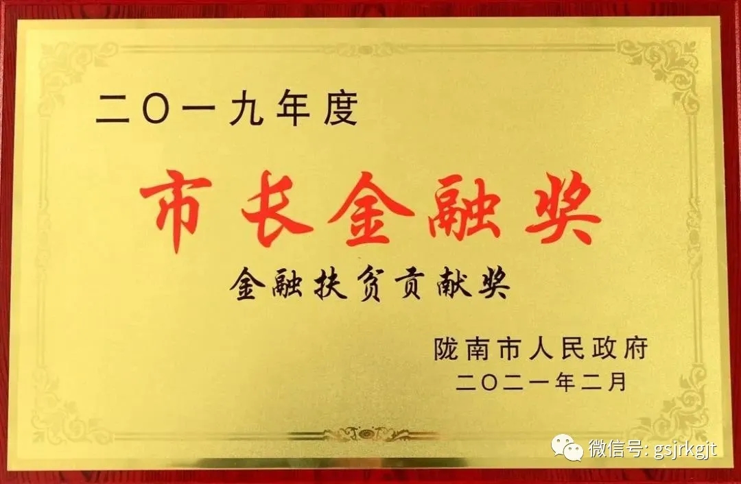 薛小勇授予金控隴南擔保“2019年度市長金融獎”